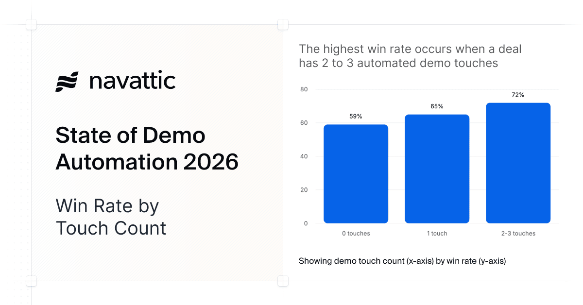 In fact, Navattic's State of Demo Automation Report shows thatdeals with two to three automated demo touches had a 72% win rate compared to a 59% win rate on deals that had zero automated demo touches.